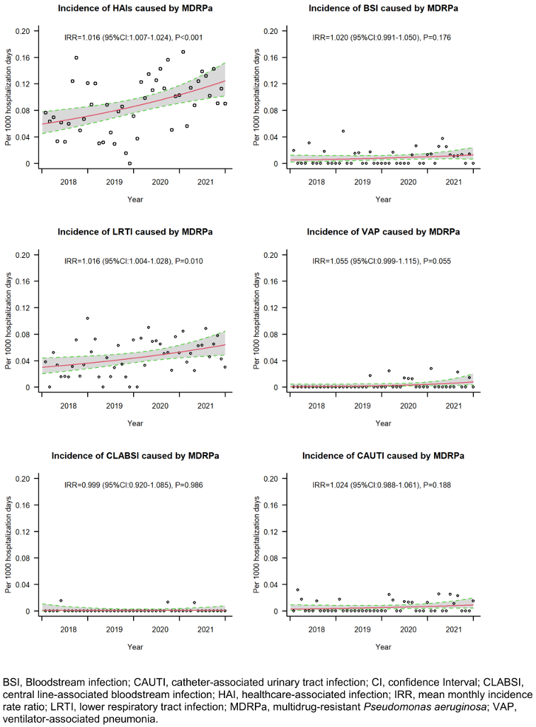 Conclusions: The study provided real-world evidence of the clinical burden of MDRPa HAIs in China, highlighting their rising incidence and direct effect on prolonging hospitalisation. The findings underscore the need for antimicrobial stewardship interventions to ensure timely de-escalation and optimised antibiotic therapy.