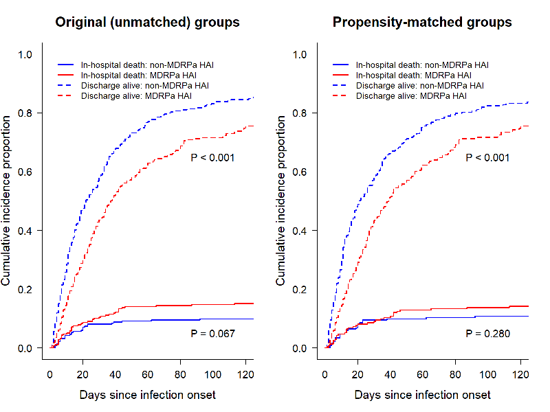 Keywords: healthcare-associated infections, multidrug-resistant Pseudomonas aeruginosa, in-hospital mortality, discharge alive, competing risk analysis, antimicrobial stewardship, incidence density, China, Dongguan