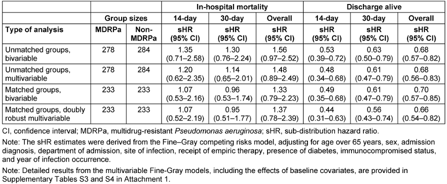 Table 2: Estimated effects of the multidrug resistance status in P. aeruginosa infection on patient outcomes